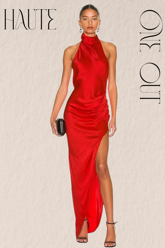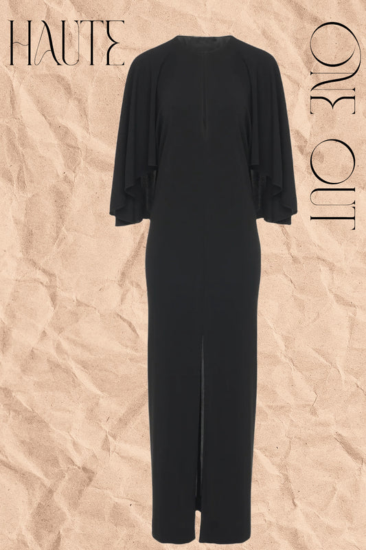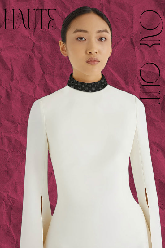 Ivory High-Neck Tunic Dress With Monogram Collar And Slit Sleeves